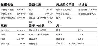集新性能與改進性能于一體,可完成擦洗,清掃,真空吸附過濾工作,使你的泳池清澈見底。它的堅固結構,藝術級最先進的軟件有效掃描你的泳池,以達到最佳的清潔效果。一個方便,易用,帶操縱手柄的遙控裝置使你能夠人工指示自動機械清潔器進入難以達到的角落,使操作完成與你的額泳池大小和形狀相適應,設置清潔周期,選擇一個最佳的自動機械清潔程序。