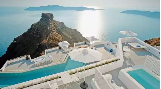 來到希臘必去的圣托里尼島,這個極具幾何造型的無邊泳池,成為游客們來到這里必須要感受的體驗之一!在無邊泳池中暢游,能看見最美的夕陽,水天一色的海洋,還有浪漫的白色建筑。